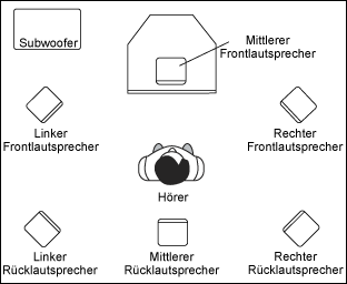 Empfohlene Lautsprecherpositionen für eine 7.1-Lautsprecherkonfiguration.