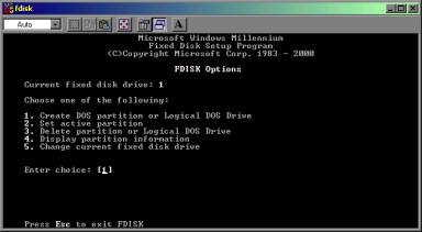 and press ENTER, Fdisk immediately takes you either to the screen where you